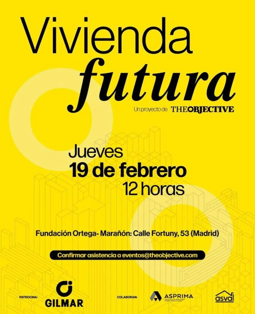 El próximo 19 de febrero, la sede de la Fundación Ortega-Marañón de Madrid acogerá la jornada ‘Vivienda Futura’, un evento organizado por THE OBJECTIVE que reunirá a profesionales y expertos del sector inmobiliario, urbanismo e inversión para reflexionar sobre la actual crisis de vivienda e intentar arrojar ideas para solucionarlo. Respaldado por empresas como Gilmar y apoyado por asociaciones del sector como ASPRIMA (Asociación de Promotores Inmobiliarios de Madrid) y ASVAL (Asociación de Propietarios de Viviendas en Alquiler), este evento tiene como objetivo ser un espacio de debate que aporte soluciones sobre la situación de la vivienda en España y será de entrada libre hasta completar aforo.