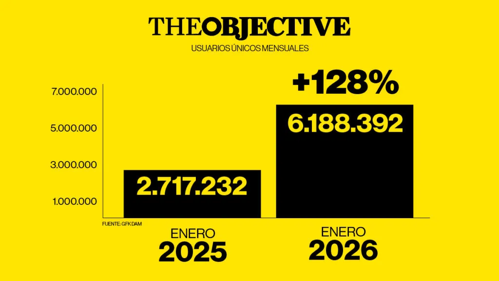 Según GFK Dam, en un solo año el periódico ha crecido un 128%, pasando de los 2,7 millones de enero de 2025 a los 6,2 de ahora. Por su parte, el otro medidor del mercado, OJD, ha certificado que THE OBJECTIVE tuvo en enero 7.143.701 de lectores en todo el mundo.