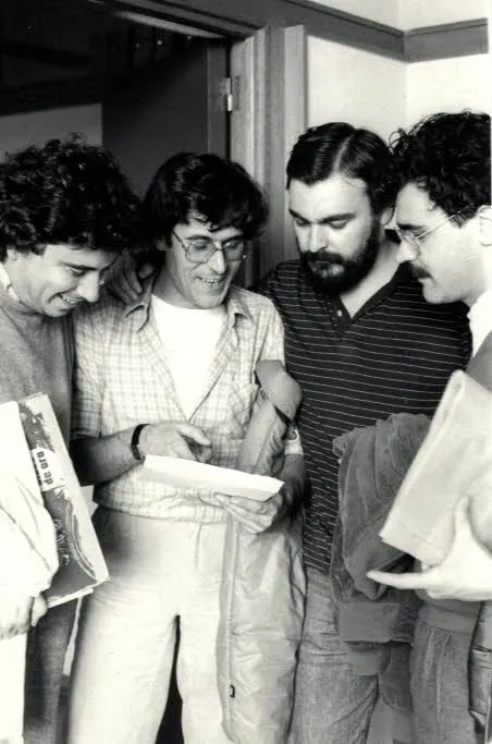R.- Durante aquellos años —1984 y 1985— tuve la suerte de ser un poco la referencia. En esa foto están Javier Rioyo, Pedro Atienza, experto en flamenco que desgraciadamente se nos ha ido, y Salvador Valdés, que ha trabajado en programas culturales de TVE.