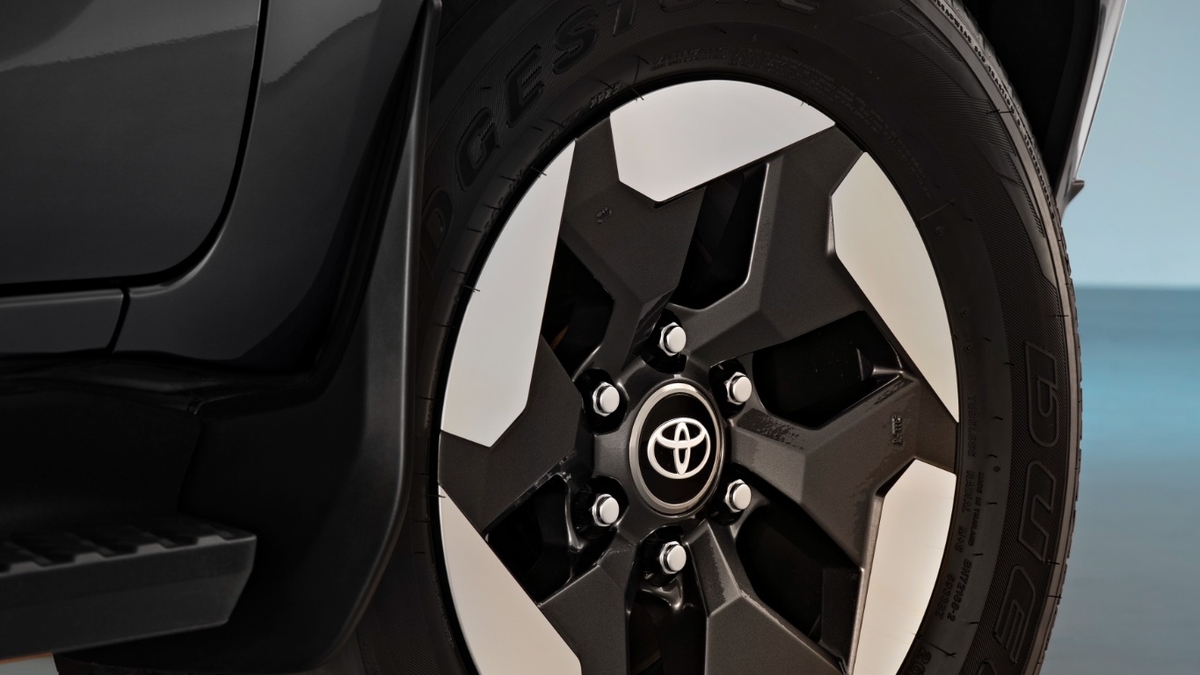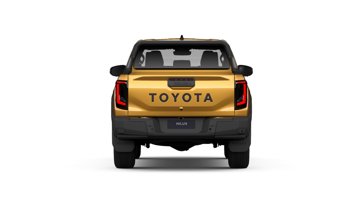 La nueva Hilux se introduce en el futuro sin salirse del todo de su pasado, y esto se aprecia nada más verla. El frontal se ha rediseñado con nuevas proporciones y, en la versión eléctrica, prescinde de la parrilla tradicional como gesto inequívoco hacia los nuevos tiempos. Los grupos ópticos, alargados y conectados por una línea horizontal, firman su nueva mirada. A los costados, unos estribos más integrados y un escalón trasero facilitan el acceso a la zona de carga. No es solo una cuestión estética, sino un complemento pensado para incrementar su carácter funcional.