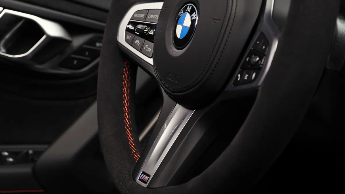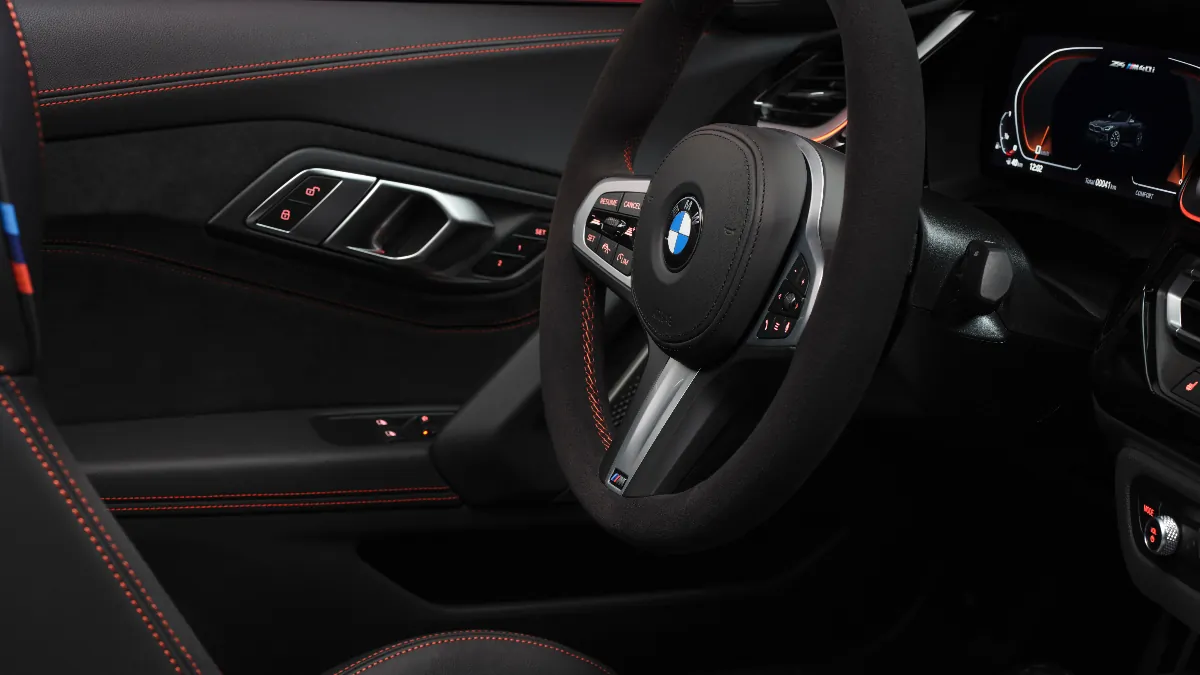 El interior, en cambio, no ofrece escapatoria posible. Todo está cosido a conciencia. Un hilo rojo recorre el salpicadero, la consola central, los paneles de las puertas y los asientos deportivos M tapizados en cuero Vernasca y Alcantara. El volante M, también forrado en Alcantara, retoma esas costuras con precisión y el toque deportivo de la marca. No hay pantallas gigantes, ni ornamentos digitales innecesarios, que aquí se ha venido a conducir, oiga.