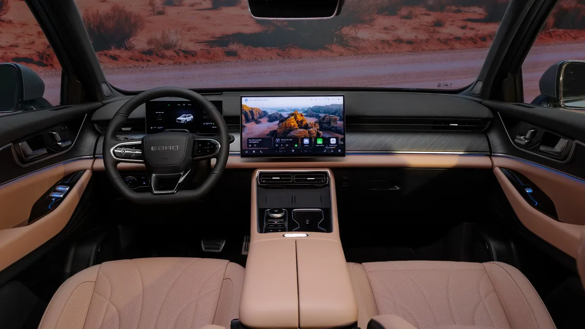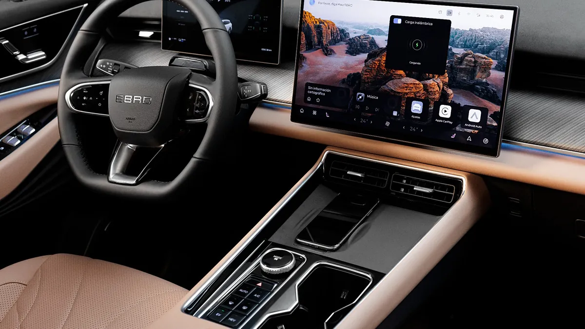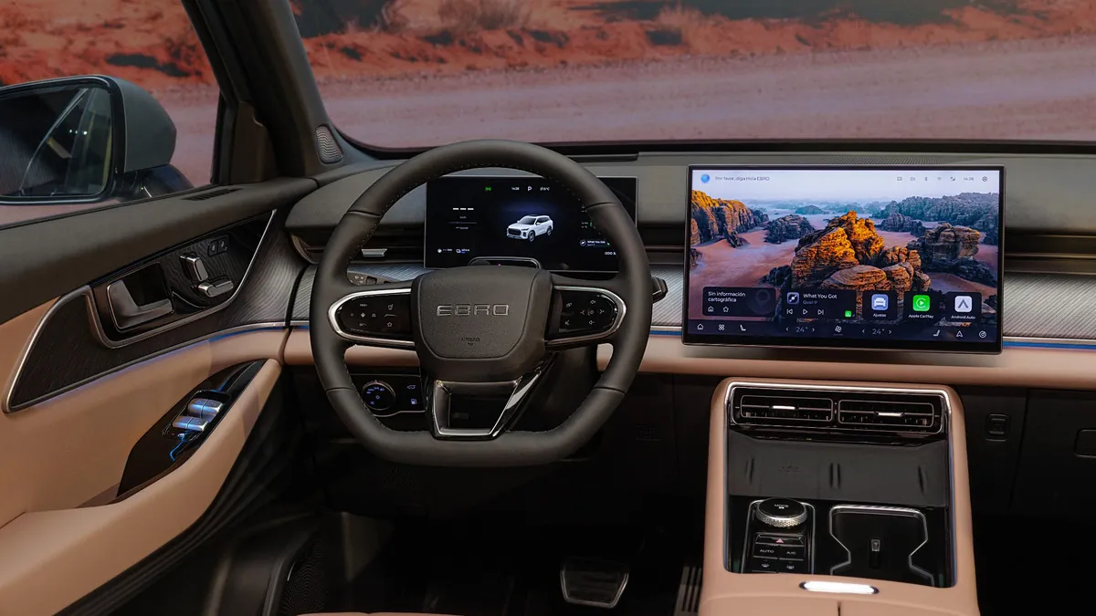 Pero donde el s900 realmente quiere marcar territorio es en su interior. El salto respecto al resto de la gama Ebro se hace evidente desde que se abre la puerta. El ambiente ya no es solo práctico, ahora es abiertamente lujoso. Se percibe en el tacto de los materiales, la consola flotante de la zona central y la iluminación ambiental de 64 colores, que puede cambiar con el estado de ánimo o el ritmo de la música.