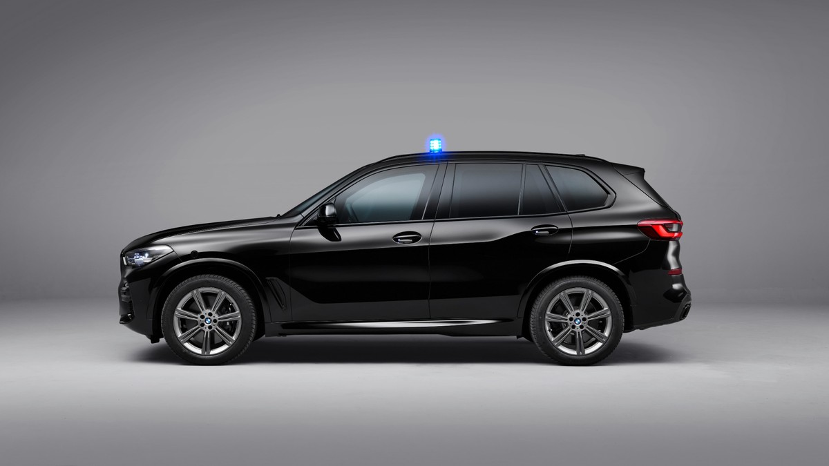 El habitáculo mantiene el diseño y la disposición del X5 de serie, con cuatro plazas, asientos calefactados y climatización independiente para cada ocupante. La consola central alberga una pantalla curva que combina instrumentación digital de 12,3 pulgadas y sistema multimedia de 14,9 pulgadas. Las funciones específicas del sistema de protección, ausentes en el resto de los productos de la marca, se gestionan desde un panel específico situado junto a la palanca de cambios. Al equipamiento adicional se le añade, entre otros elementos, el control de las luces intermitentes integradas en parrilla y techo, sirena y mástil para banderas.