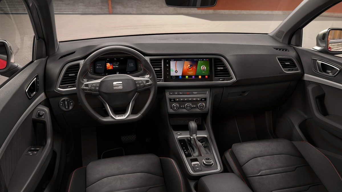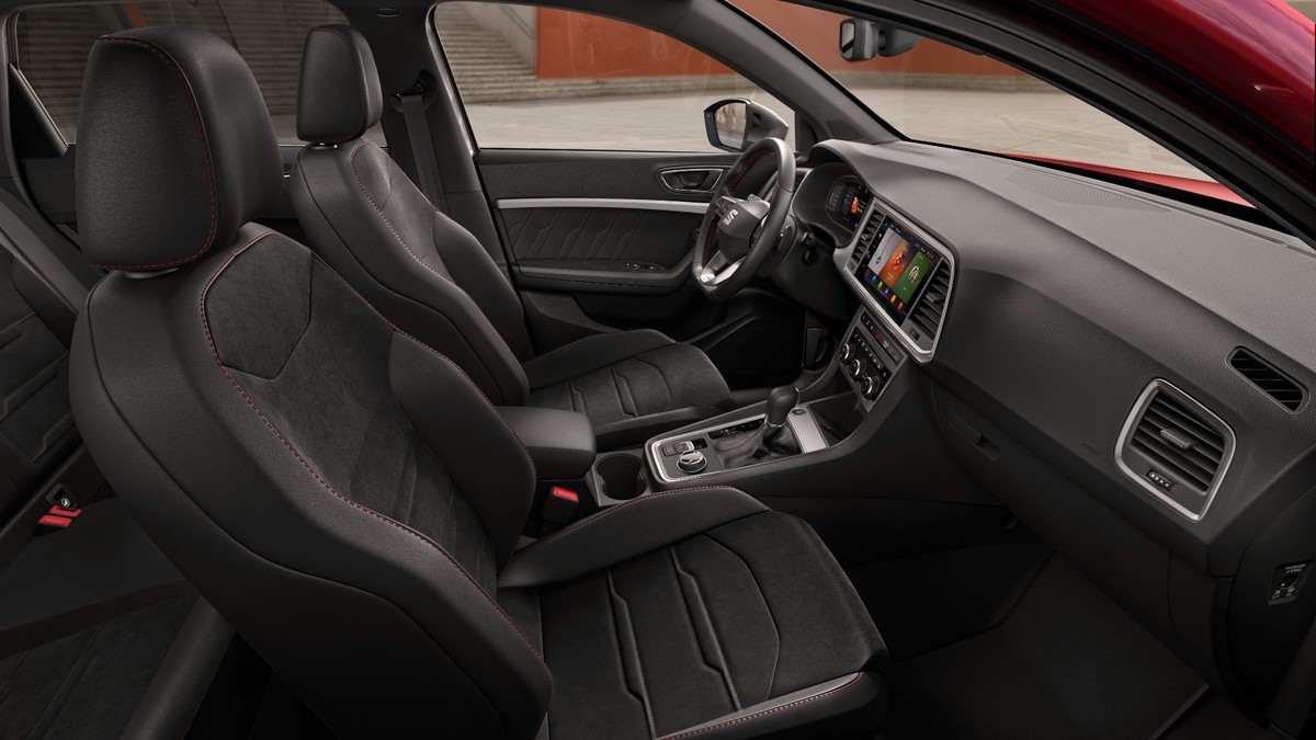 El volante tiene un buen grosor y está forrado en cuero, con mandos físicos y levas pequeñas detrás. Su tacto es correcto, aunque algo duro en recorridos largos. Los asientos, de diseño deportivo, combinan piel vuelta y símil cuero con costuras rojas. Ofrecen una sujeción lateral notable sin renunciar al confort. El del conductor cuenta con ajuste eléctrico. El pomo del cambio sigue siendo convencional, algo que muchos agradecerán en un entorno en el que otros modelos del grupo han pasado a pulsadores o selectores pequeños.