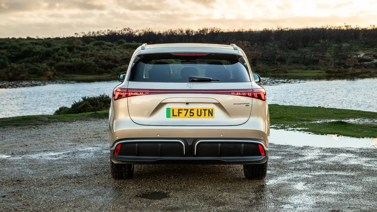 El diseño exterior no llama la atención y carece de líneas imposibles o aristas innecesariamente agresivas. Es un SUV de proporciones equilibradas, con un frontal limpio y una parrilla dividida inspirada en el MG Cyberster. Los faros son finos, el capó está rebajado para mejorar la aerodinámica y el conjunto transmite solidez sin llamar la atención. En la parte trasera, una barra luminosa da continuidad al lenguaje visual del frontal y remata una zaga sin ornamentos. El alerón superior integra la luz de freno y el difusor inferior aparece en acabado plateado.