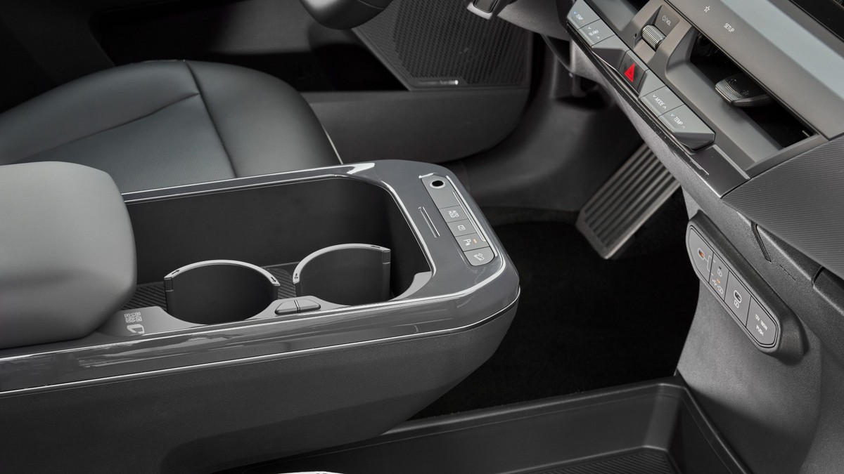 El volante, con múltiples mandos físicos y levas para regular la frenada regenerativa, permite adaptar el comportamiento del coche al gusto del conductor. Se puede circular con un solo pedal en ciudad, para aprovechar la retención, o dejar que el coche ruede con mayores inercias en carretera. La consola central es amplia, con huecos generosos para objetos cotidianos y varias tomas USB que facilitan la vida digital de los ocupantes.