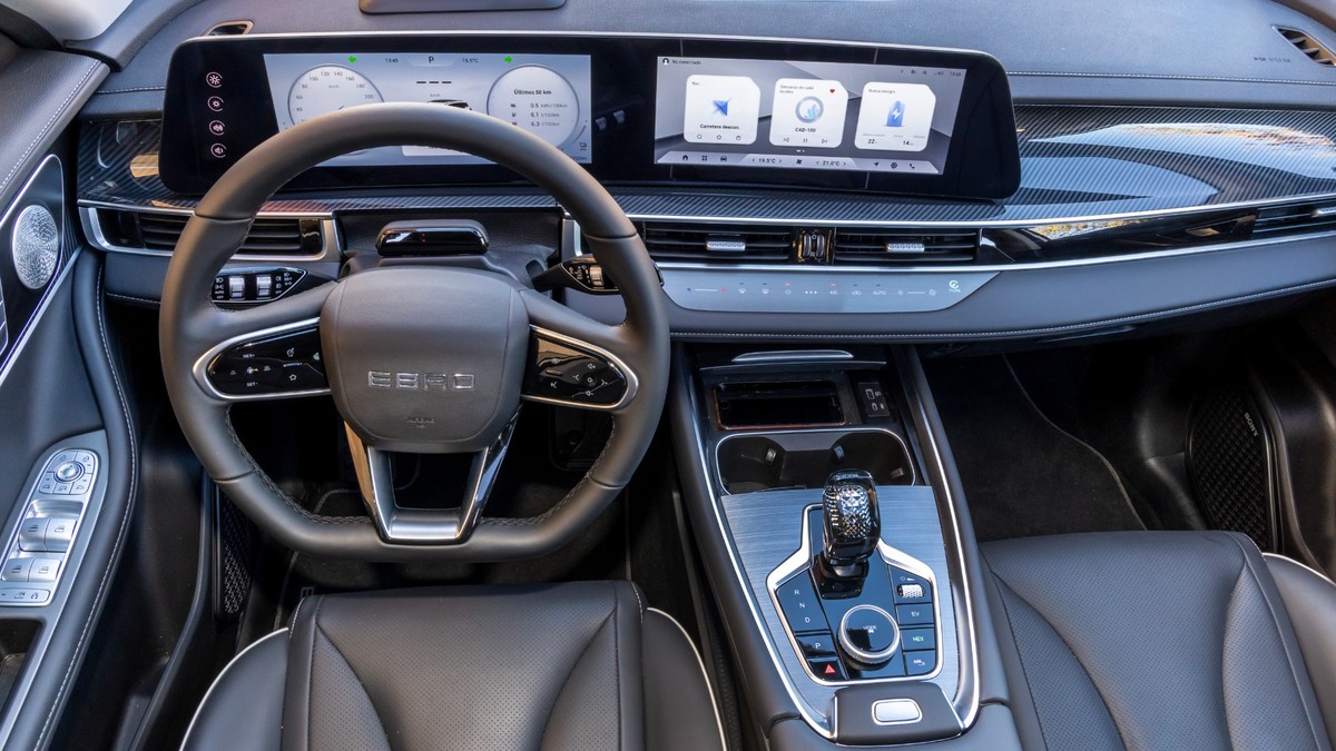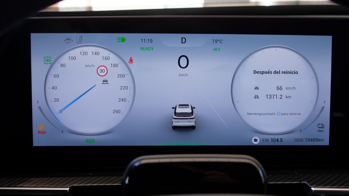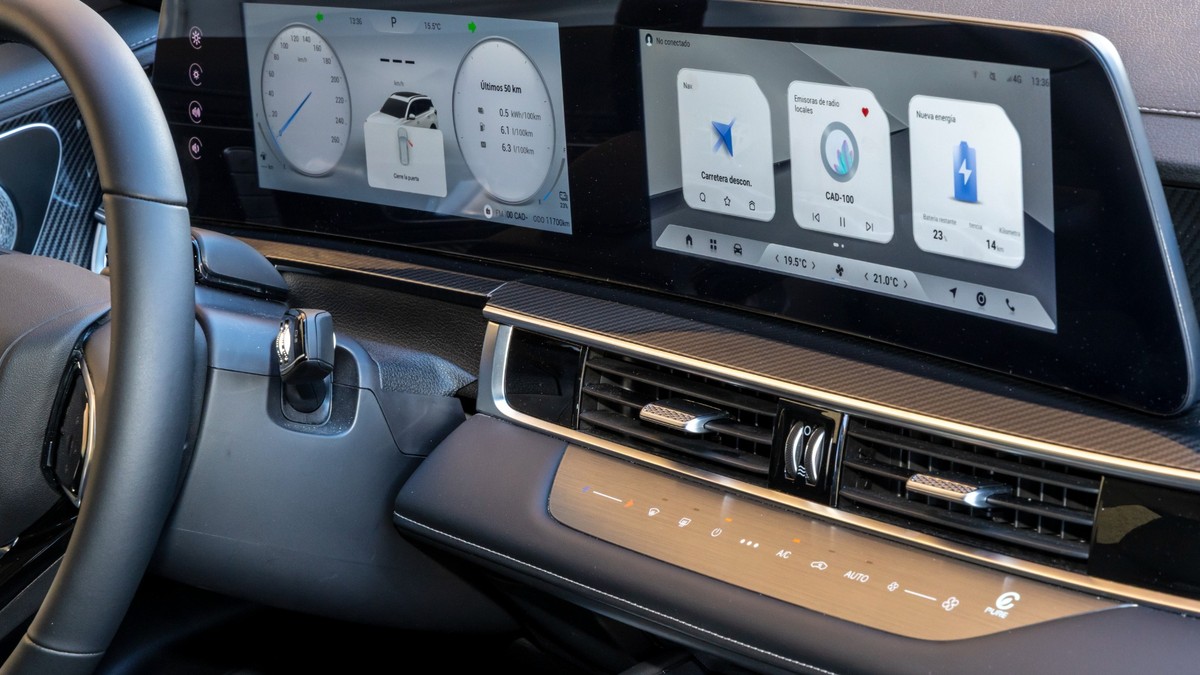 Dentro es donde el s700 HEV busca dar el salto cualitativo, y donde se aprecia que la marca sabe que ha de dar algo más para diferenciarse. El habitáculo queda dominado por una doble pantalla panorámica de 12,3 pulgadas que agrupa instrumentación y el control del sistema multimedia bajo una misma superficie acristalada. El efecto visual resulta atractivo y ordenado. No hay botones dispersos sin sentido y la consola central flota con cierto aire moderno que acerca el conjunto a segmentos superiores.