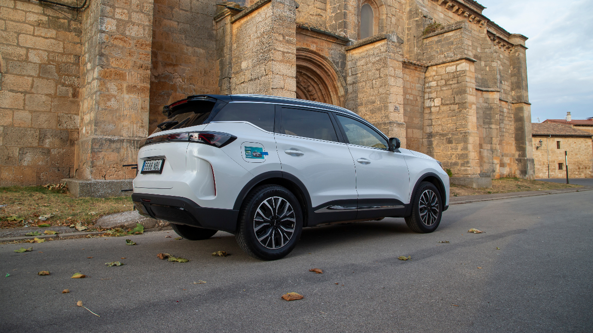 El diseño exterior transmite empaque, con llantas de diámetro generoso, pasos de rueda marcados y una línea de cintura alta que aporta una sensación de coche asentado, rayano en lo clásico. Se integra en el paisaje europeo con naturalidad, que no es poco en una categoría repleta de opciones, muchas de ellas casi clónicas a sus competidores.