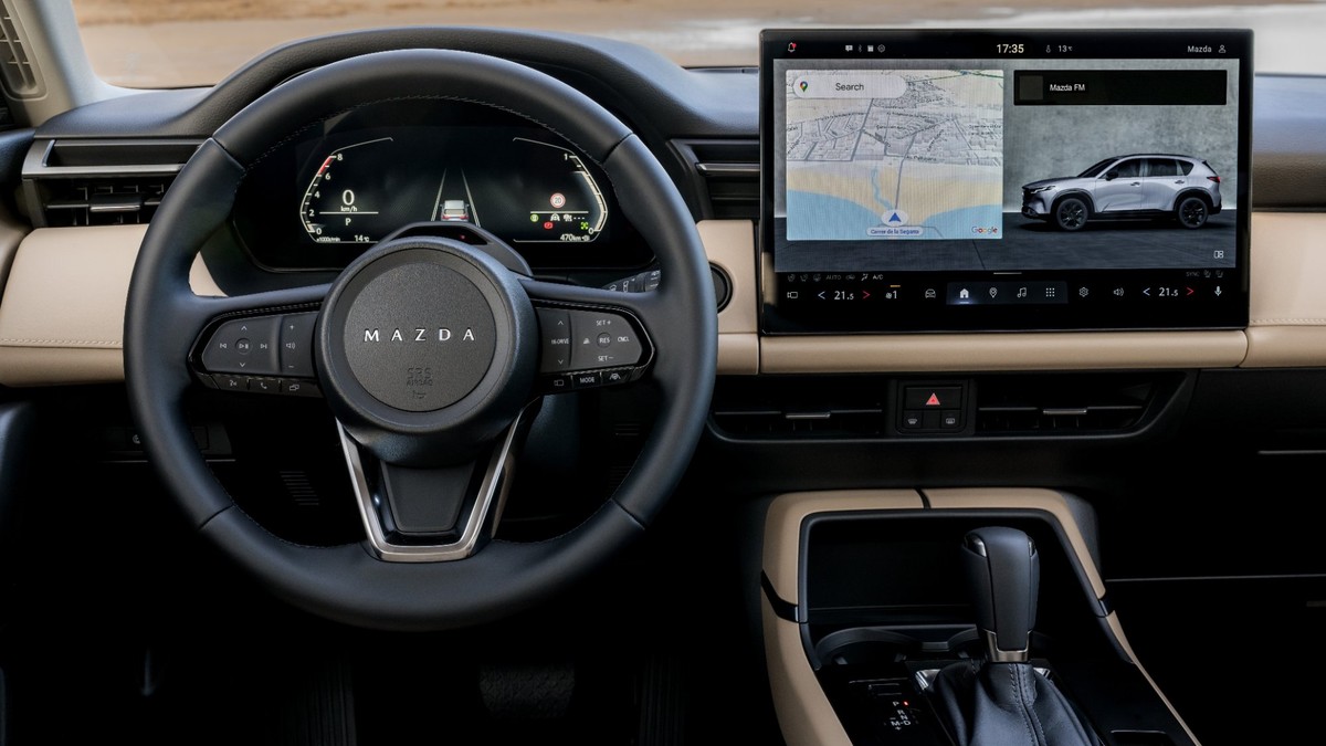 Bajo el capó, Mazda apuesta en esta primera fase por un único motor: un 2,5 litros atmosférico de cuatro cilindros asociado a una caja automática de seis velocidades y tracción total. La marca no expone su potencia, pero sí el par, 252 Newtons metro, y afirma que su entrega es suficiente para mover los 1.749 kilos del conjunto con dignidad. El 0 a 100 se sitúa en 8,3 segundos estimados, cifras coherentes para un SUV familiar sin aspiraciones deportivas.