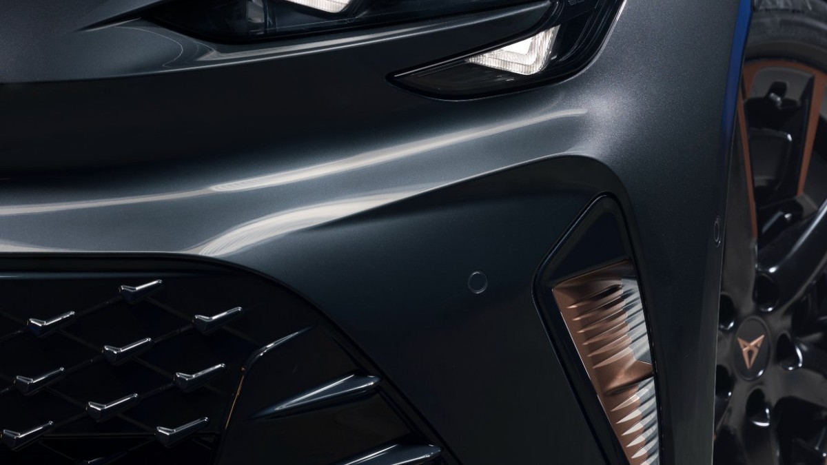 Los diseñadores de Cupra han redibujado la cara del Born sin mirar hacia atrás; da la sensación de que empiezan desde cero. Los nuevos faros Matrix LED adoptan una firma luminosa triangular que concentra el carácter de la marca. La nariz de tiburón, el paragolpes rediseñado y la parrilla central de geometría paramétrica con ribetes en color cobrizo componen una delantera que impone presencia.