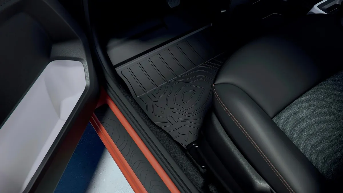 Dacia también ha trabajado la aerodinámica, aunque el Spring no sea un coche para batir récords. Ahora dispone de áreas carenadas bajo la carrocería en las zonas delantera, lateral y trasera. Si añadimos un alerón rediseñado y nuevos perfiles de llanta, se alcanza un coeficiente SCx de 0,745 a 0,660 con llantas de 14 pulgadas. En un coche que consume 12,4 kWh cada 100 kilómetros en ciclo WLTP, esa bajada en la resistencia aerodinámica contribuye de forma directa a mantener la autonomía con una batería algo más pequeña.