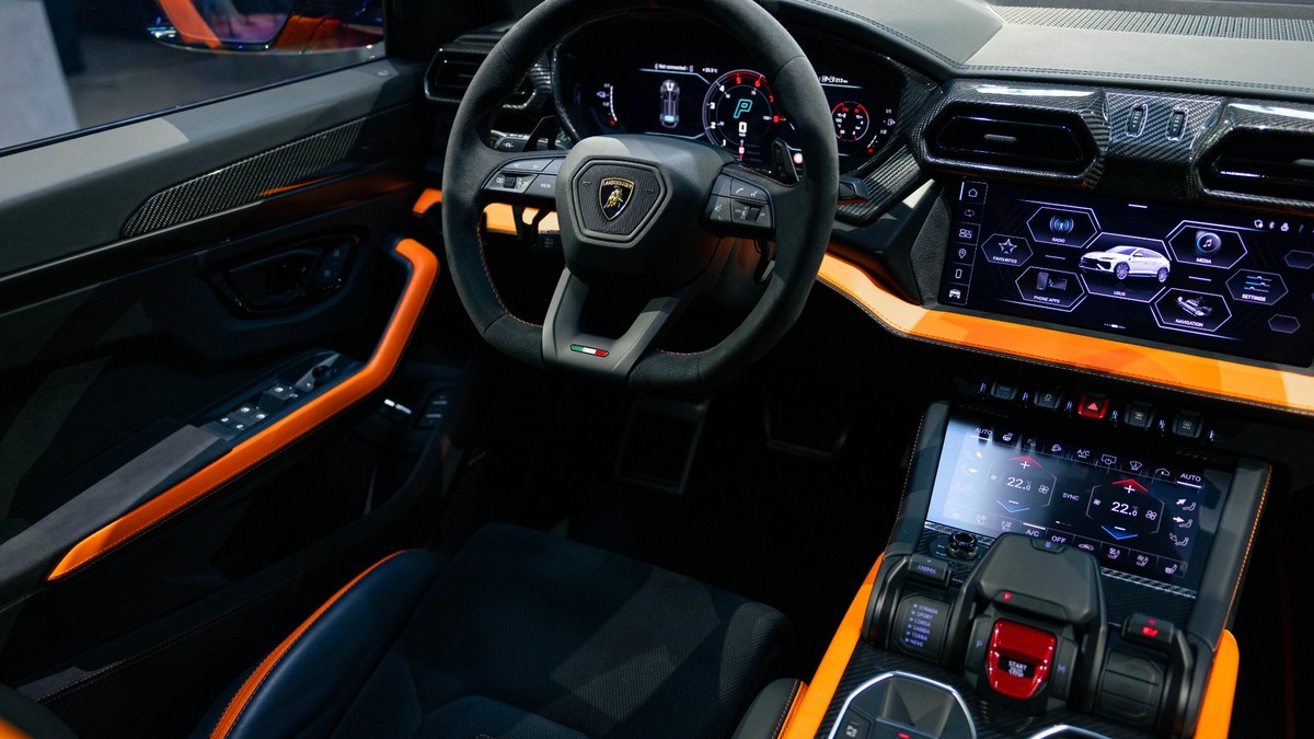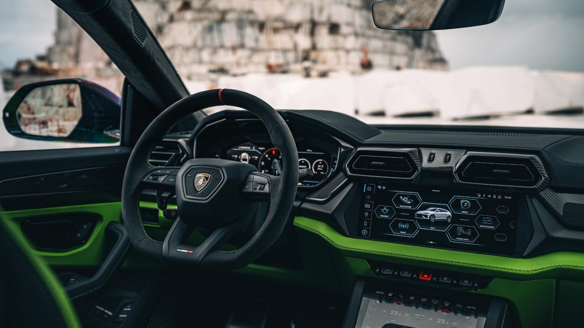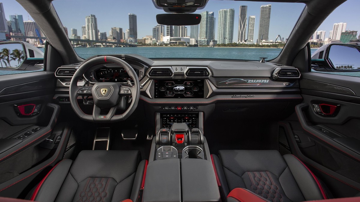 El interior mantiene la deuda genética con el Audi Q8, plataforma que comparte con el Bentley Bentayga y el Porsche Cayenne, aunque cada uno tiene sus particularidades. Lamborghini ha reforzado su filosofía piloto con aluminio anodizado, nuevos revestimientos y una pantalla central de 12,3 pulgadas más intuitiva. Los hexágonos son el motivo omnipresente: en los difusores de aire, en los apoyabrazos, incluso en el portavasos, que solo por llevar la contraria —y acomodar los vasos— es octogonal, que el fanatismo geométrico tiene sus límites.