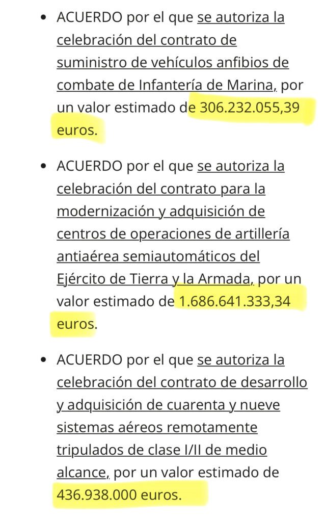 -Defensa. Esta semana «solo» se destinan a diversos proyectos de defensa 6.318 millones de euros.