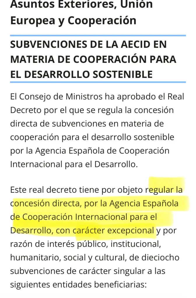 -Subvenciones AECID. La Agencia de Cooperación para el Desarrollo concede 18 subvenciones directas por un montante que no aclara a varias entidades como la Academia de las Artes y las ciencias Cinematográficas de España, Instituto de Estudios sobre conflictos y acción humanitaria, la Fundación Carolina, Fundación privada casa América Catalunya, Fundación municipal de cultura del Ayuntamiento de Cádiz…