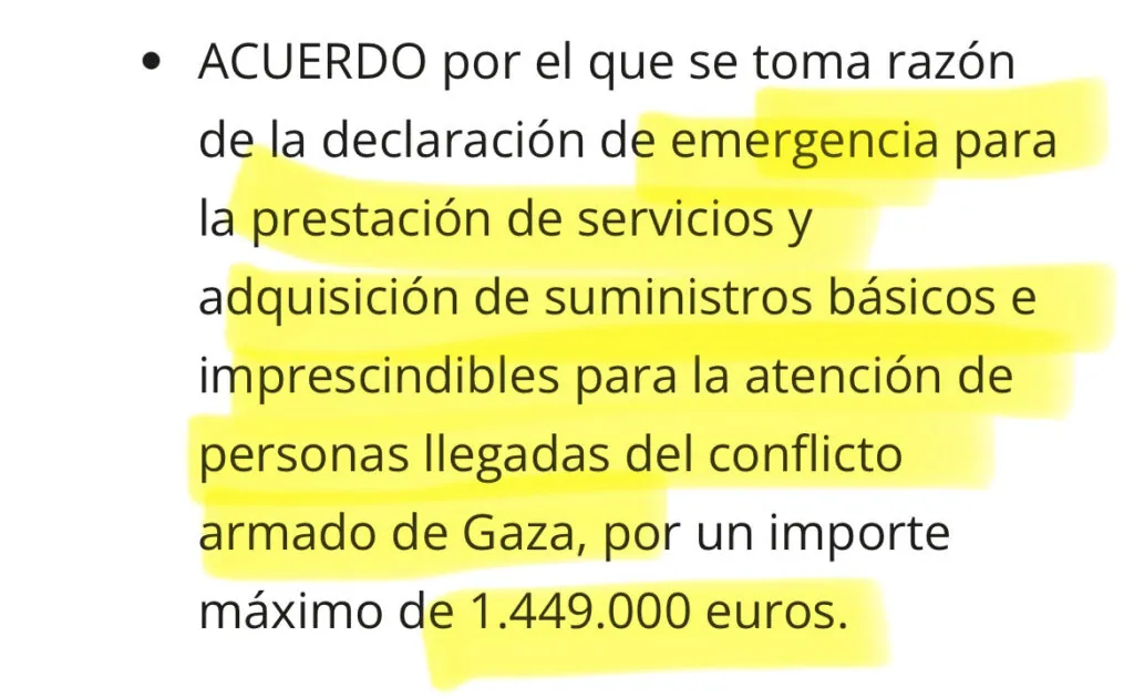 -Atención a gazatíes. 1,45 millones de euros se van a este menester de forma urgente. Parece que seguimos recibiendo personas de Gaza, y pagando su manutención.