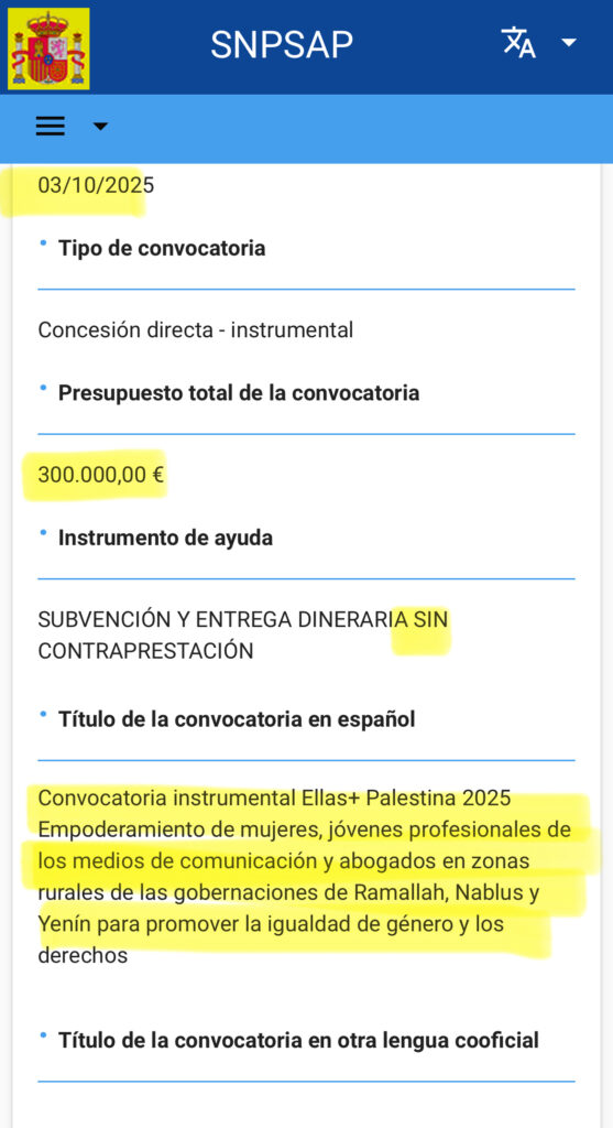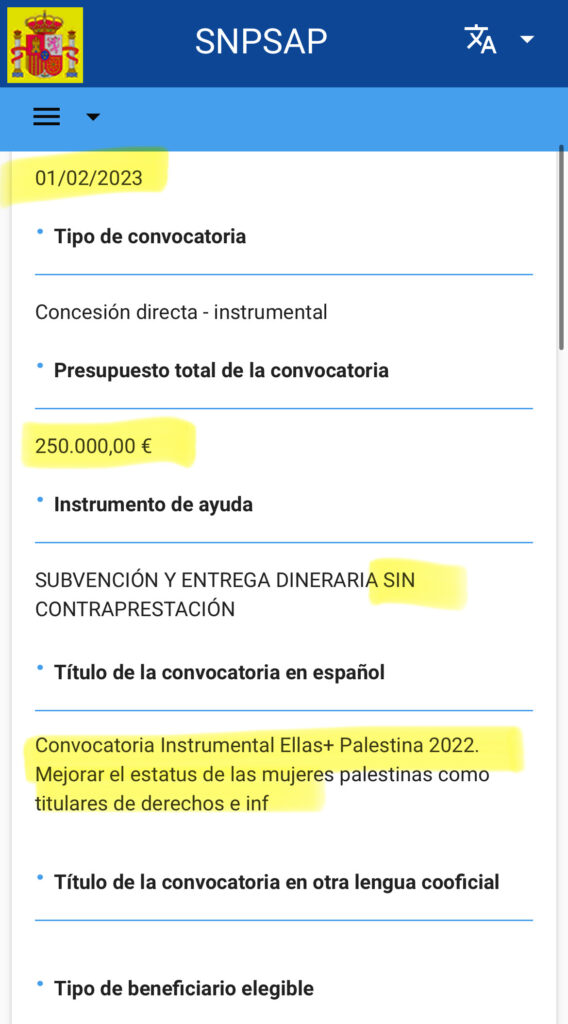 - «Convocatoria Instrumental Ellas+ Palestina 2022. Mejorar el estatus de las mujeres palestinas como titulares de derechos e información»