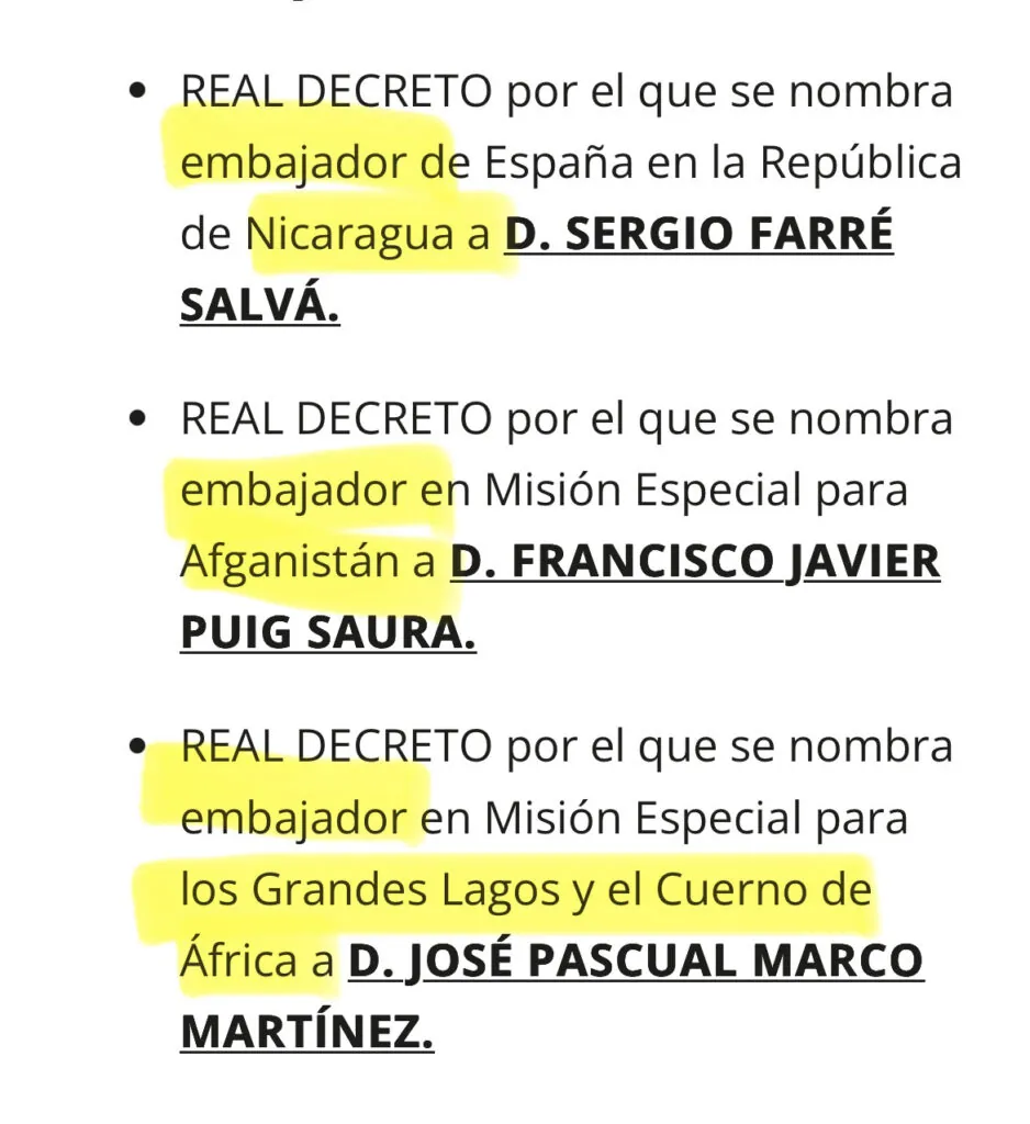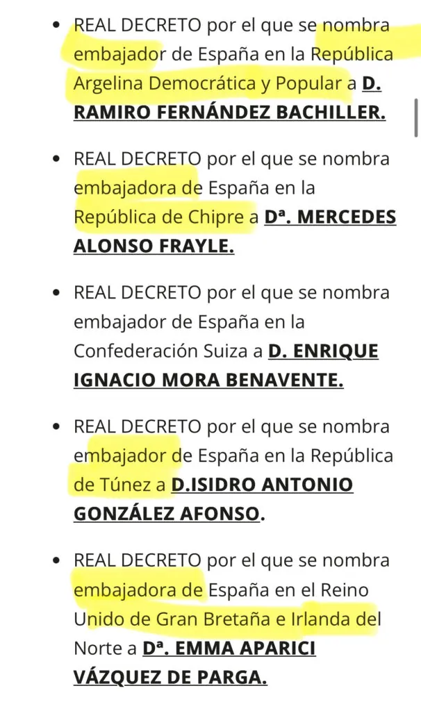 -Nombramientos por designación digital. Este martes se nombraron embajadores de España: