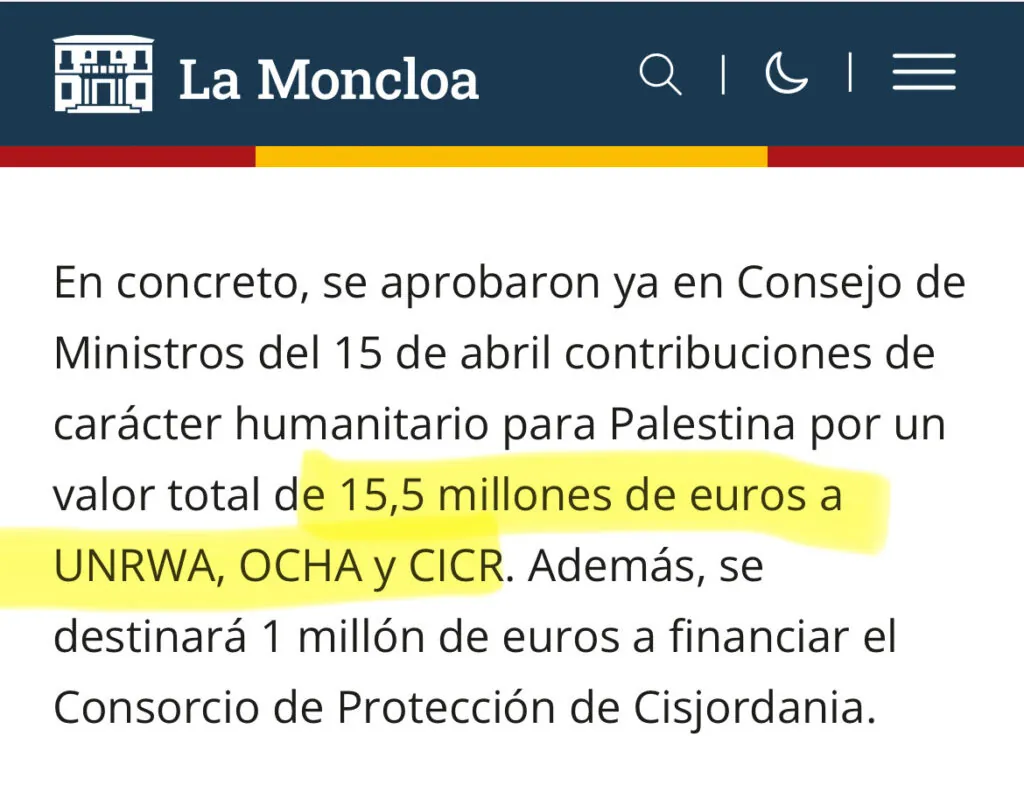 Otras partidas enormes de dinero público han viajado a Palestina. Podría tener cierto sentido, habida cuenta de que acaban de pasar por una guerra, pero hay que matizar que Palestina, a pesar de su evidente control político por un grupo terrorista (Hamás) siempre ha sido destinatario habitual de dinero de cooperación. En Palestina las cantidades mayores de dinero público han sido recibidas por la Agencia de Naciones Unidas para los Refugiados en Palestina (UNRWA), que ha recibido multitud de partidas millonarias de dinero público a pesar de las noticias que sitúan a alguno de sus miembros en Hamás. Destacan partidas millonarias como la de 13,5 millones de euros en abril y la última la semana pasada de 1,3 millones de euros. Reseñable es que otros países suspendieran esas ayudas cuando se publicaron esos vínculos con el grupo terrorista. El Gobierno español no lo hizo, al contrario, aumentó el dinero público enviado a este menester, como también lo ha hecho con las enormes cantidades de dinero público español que reciben entes de la ONU en cooperación.