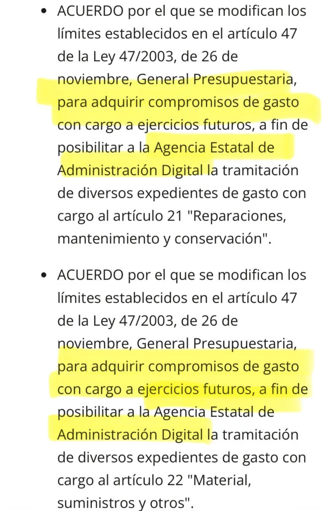 Compromisos de gasto con cargo a ejercicios futuros: este ha sido un mecanismo jurídico compulsivamente usado por un Gobierno sin presupuestos, y supone nada más y nada menos un lastre para futuros gobiernos, que, si pretenden aprobar cuentas, contarán con todo este pasivo antes siquiera de poder entrar en las cuentas ministeriales. Todos los ministerios han abordado gastos corrientes y extraordinarios a través de este mecanismo que pasa absolutamente desapercibido, pero que supone una herencia envenenada que será fruto de recortes y ajustes si llega un gobierno responsable a la Moncloa. Han sido cientos los acuerdos en este sentido por cientos de millones de euros que han sido ocultados en las publicaciones del Consejo de Ministros.