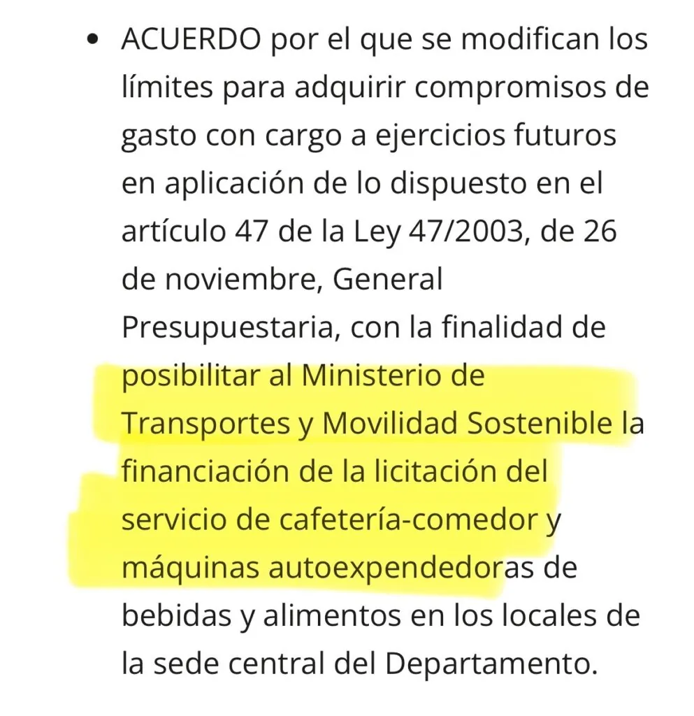 - Hipotecamos cuentas futuras para financiar la licitación de la cafetería-comedor y máquinas autoexpendedoras del Ministerio de Trabajo y Economía Social y del Ministerio de Transportes y Movilidad Sostenible. No sabemos su coste.