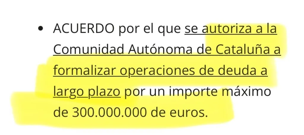 - Este martes se autorizó a Cataluña para endeudarse por otros 300 millones de euros más. Recuerden que luego esas partidas pueden ser objeto de quitas y negocios diversos entre el gobierno central y el autonómico.