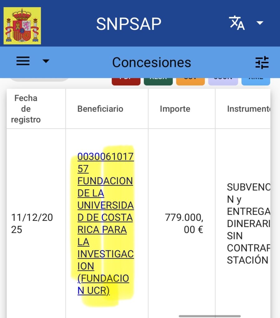 En cuanto a la Fundación que ha recibido supuestamente el dinero público español, poco puedo contarles. La web propia se cuelga constantemente sin que pueda acceder a la información. Y las webs secundarias que citan a este ente no ofrecen información concreta sobre su actividad o el uso de los recursos que supuestamente recibe. A través de investigaciones un poco más profundas, he podido dirimir que esta Fundación es un ente privado y sin —teórico— ánimo de lucro vinculado a la Universidad de Costa Rica que administra proyectos de investigación, docencia y acción social. Pero no he podido acceder a ninguno de esos proyectos.