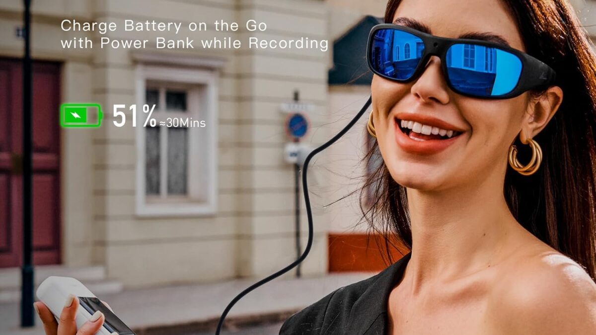 - Algunos modelos de gafas con cámara permiten la grabación mientras están conectadas a una fuente de alimentación, como un banco de energía, lo cual puede extender significativamente el tiempo de grabación.