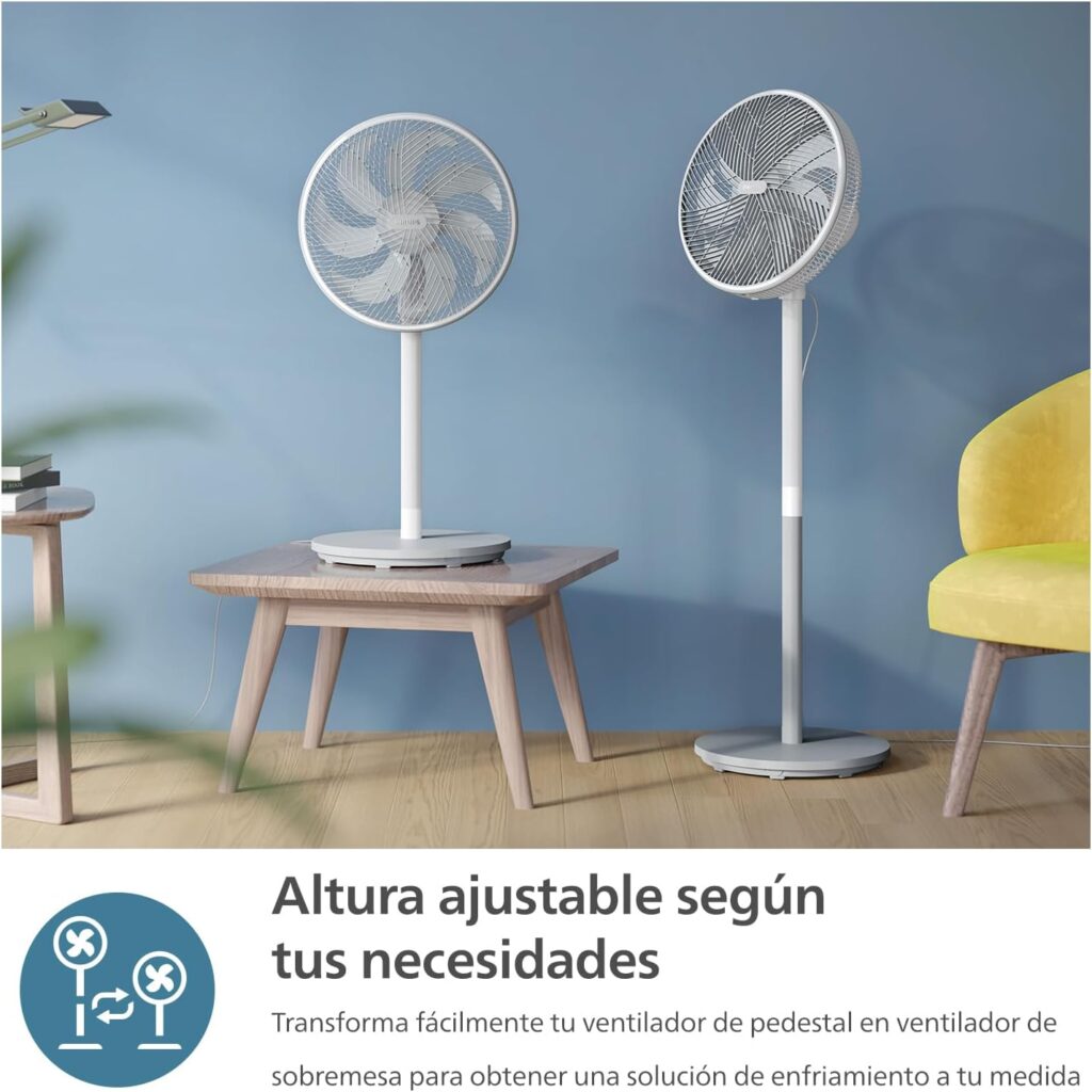 Hoy, los ventiladores de pie han evolucionado mucho más. Aunque mantienen el principio básico de mover aire para refrescar, los nuevos modelos incorporan: