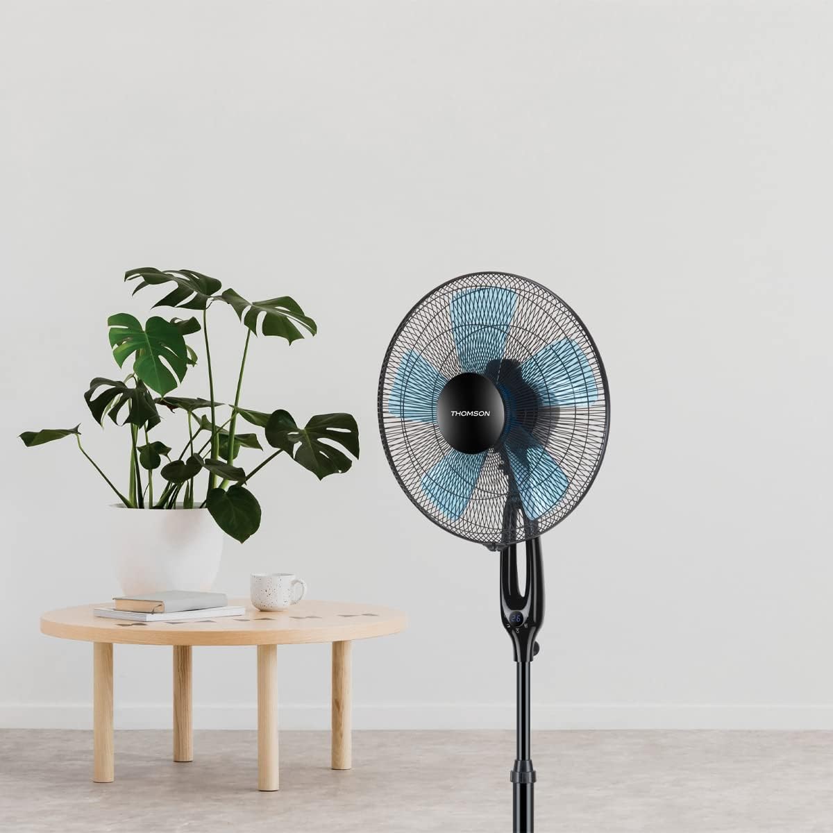 Este es un modelo de ventilador que ofrece una gran potencia de 60W, que con su motor de cobre aporta la máxima eficiencia posible para ventilar tus espacios. Tiene un tamaño de 16 pulgadas, que son equivalentes a 40cm, y que aportan un gran diámetro que potencia la salida del flujo de aire gracias a su sistema de 10 aspas. Tiene una barra telescópica ajustable que se puede ajustar entre los 115 y los 135cm, para que puedas elegir fácilmente la altura deseada.
