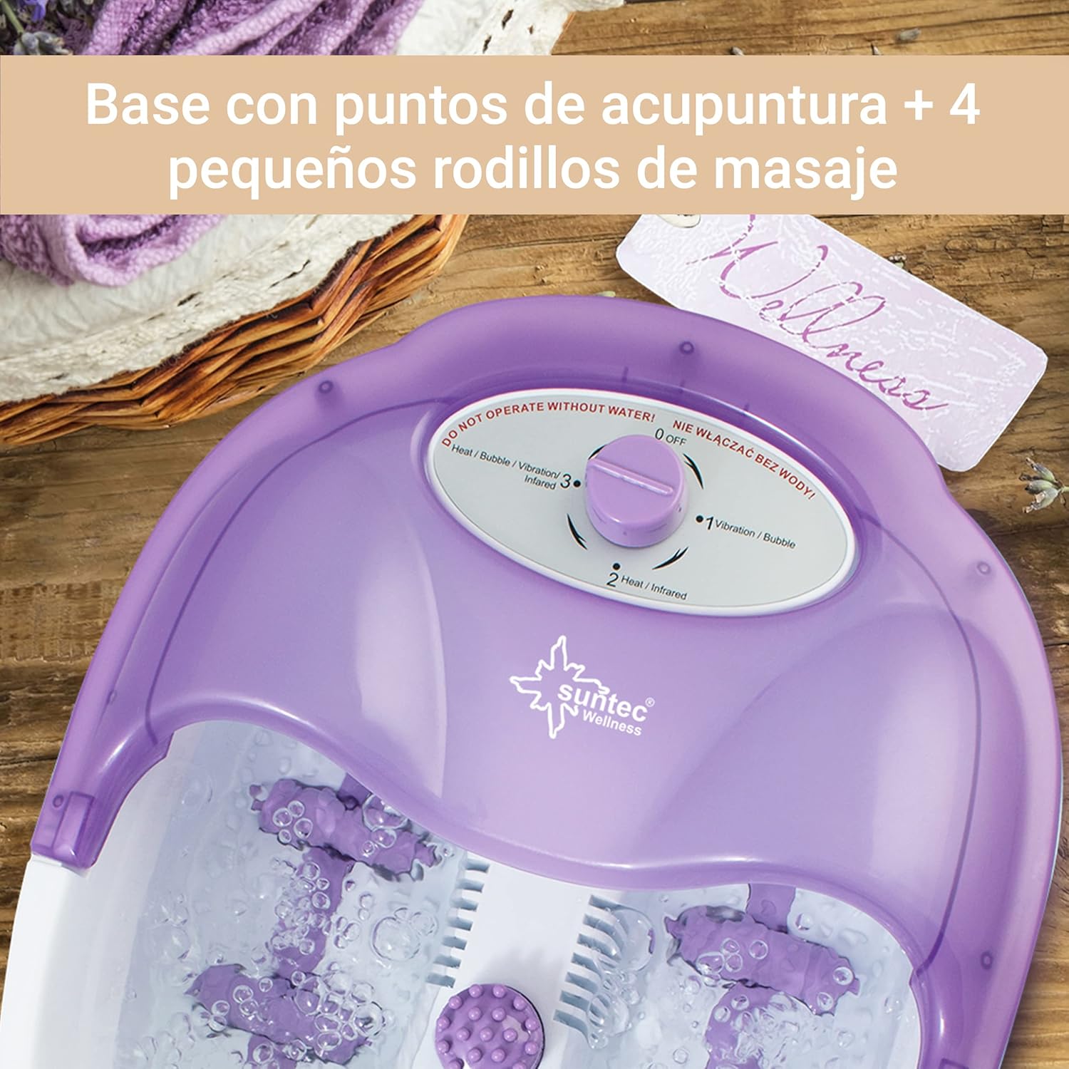 Este es un modelo de masajeador de baño para pies, que tiene rodillos de masaje extraíbles y permite disfrutar de un baño de pies muy relajante. Permite dar un masaje en la zona refleja de los pies. Se puede utilizar el filtro de aromas extraíble para añadir tus aromas favoritos durante el baño. También incorpora unos puntos de luz infrarroja que permiten tener una relajación adicional.
