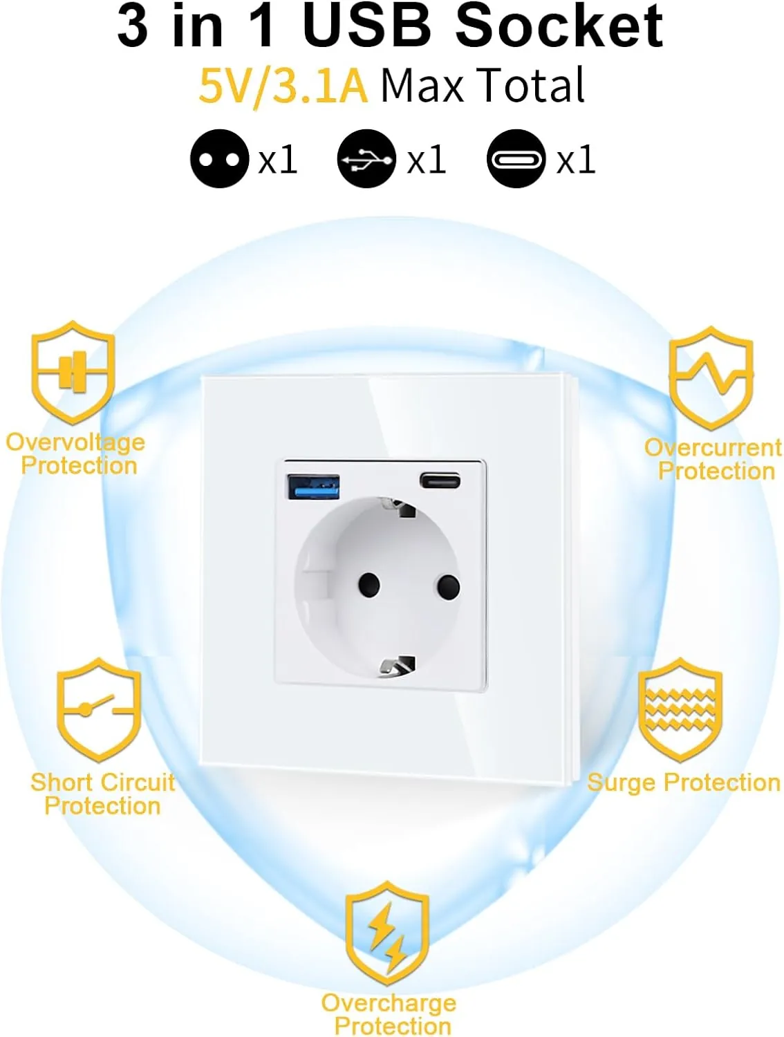 ⭐ Los usuarios destacan su diseño premium, facilidad de instalación y la velocidad de carga. Muchos mencionan que es ideal para reemplazar enchufes convencionales en dormitorios y cocinas, permitiendo mantener los espacios ordenados y modernos. Otros subrayan la seguridad infantil y el acabado sofisticado en cristal, que se integra perfectamente con cualquier estilo de decoración.