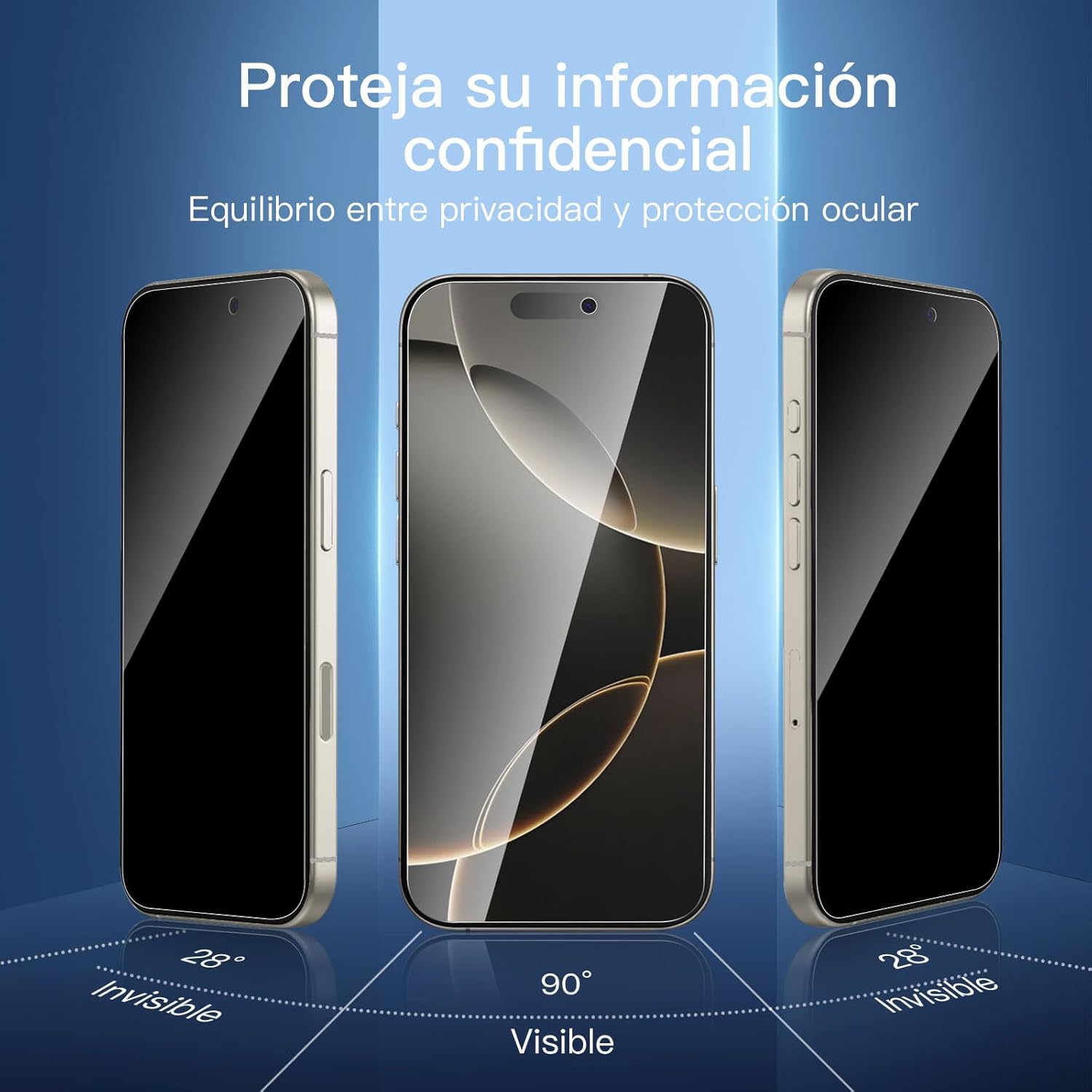 - Protección de privacidad 2 en 1: Impide que personas cercanas vean la pantalla y protege tus datos sensibles.
