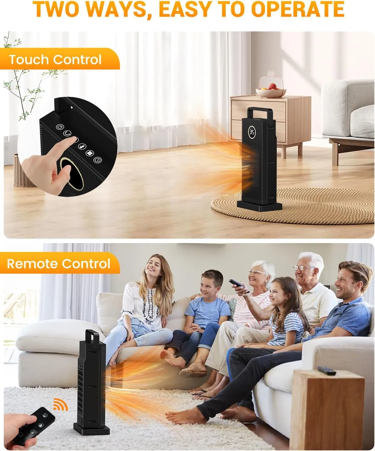 Este radiador eléctrico compacto combina tecnología cerámica PTC, bajo consumo energético, múltiples modos inteligentes, protección avanzada y un diseño portátil que te permite moverlo por toda la casa con total comodidad.