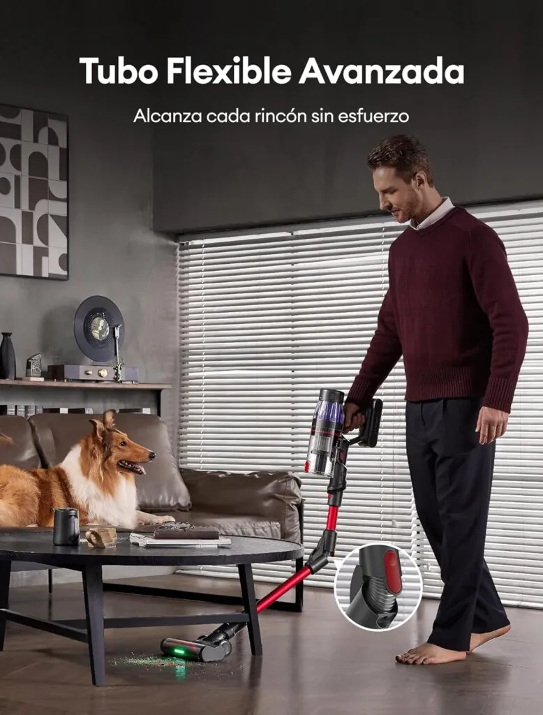 Es especialmente eficaz en hogares con perros o gatos, donde otros aspiradores suelen quedarse cortos o atascados. Además, gracias a su peso ligero y a su diseño de escoba clásico, puede utilizarse con una sola mano, subir escaleras o alcanzar zonas altas sin esfuerzo. Incluso personas mayores pueden manejarla con comodidad.