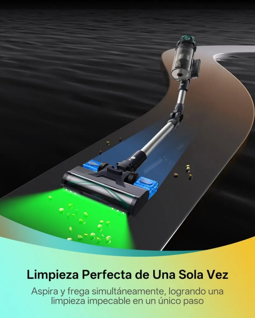 Gracias al tanque de agua de 230 ml y su mopa lavable, este modelo combina ambos procesos, reduciendo el tiempo de limpieza y mejorando el acabado final. Derrames, manchas y polvo desaparecen en una sola pasada.