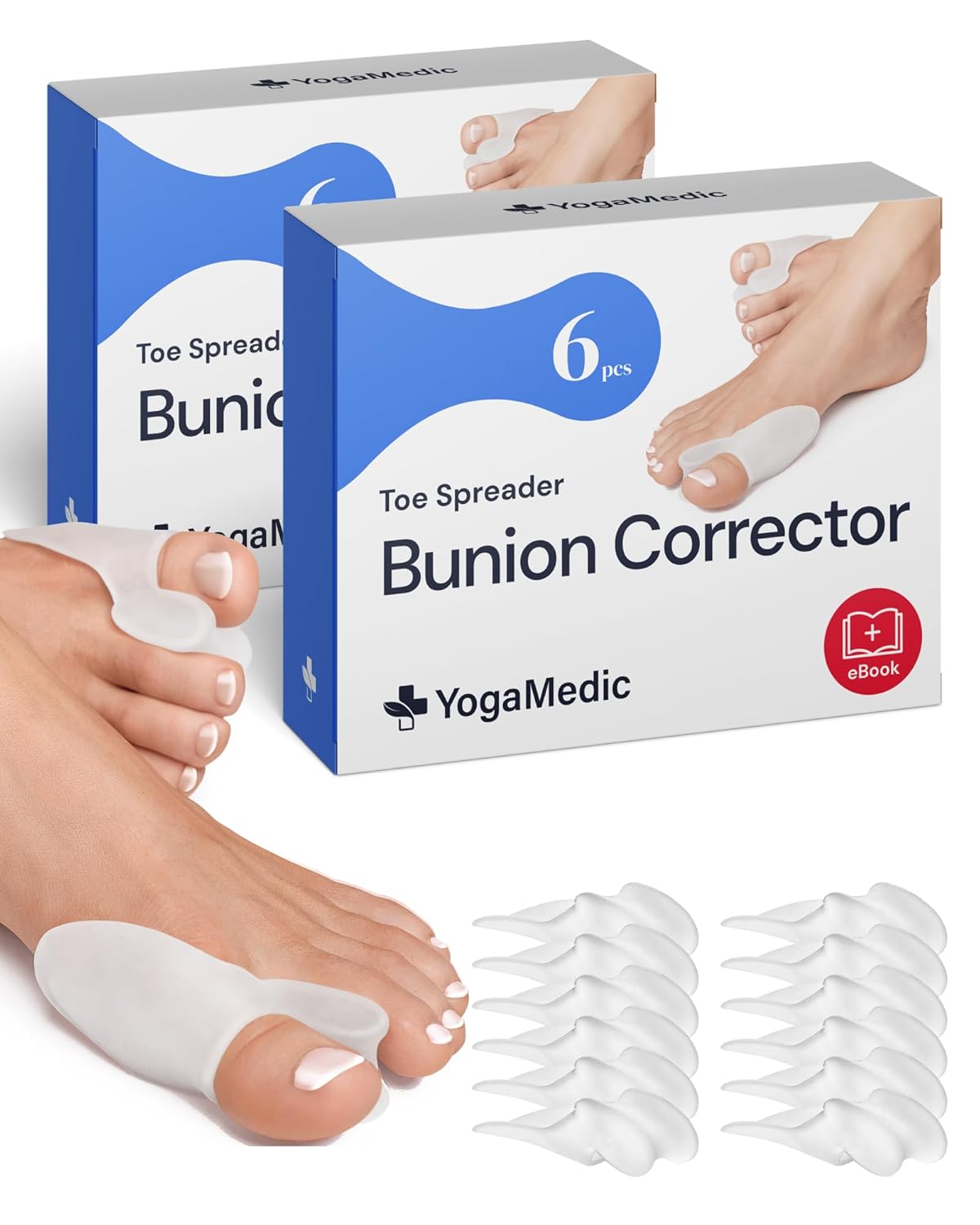 El YOGAMEDIC Corrector de Juanetes es una solución discreta, cómoda y eficaz para aliviar las molestias causadas por el hallux valgus y mejorar la alineación del dedo gordo del pie en el día a día. Gracias a su diseño transparente y flexible, permite un uso continuo sin interferir con el calzado, siendo ideal para quienes buscan prevención, alivio y confort diario sin dispositivos voluminosos.
