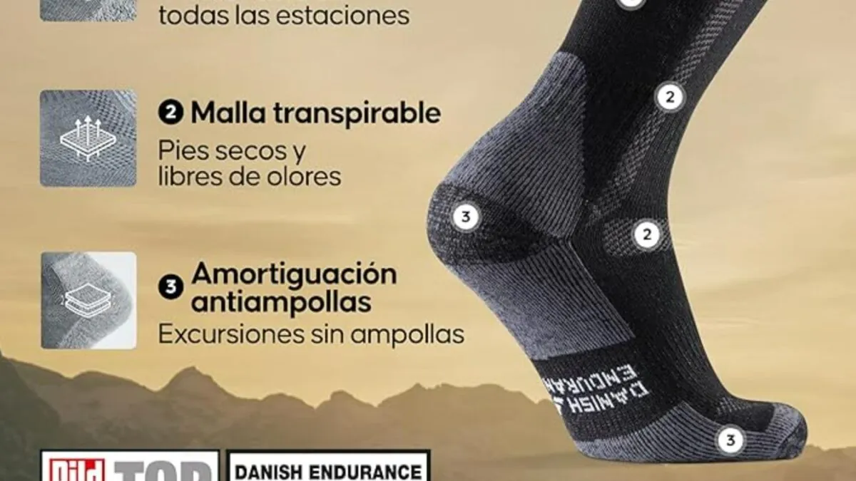 - Material recomendado: Lana merina, poliamida o acrílico son opciones muy eficaces, ya que absorben el sudor, permiten la transpiración y mantienen los pies secos.