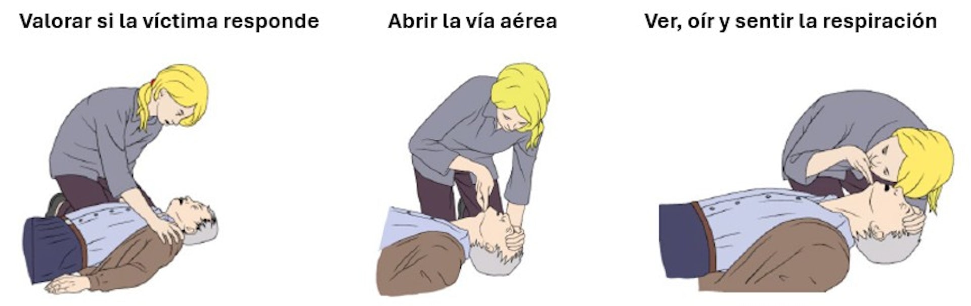 Una persona en PCR suele estar inconsciente y no respira o lo hace de forma anormal (gasping o boqueos). Ante esta situación: