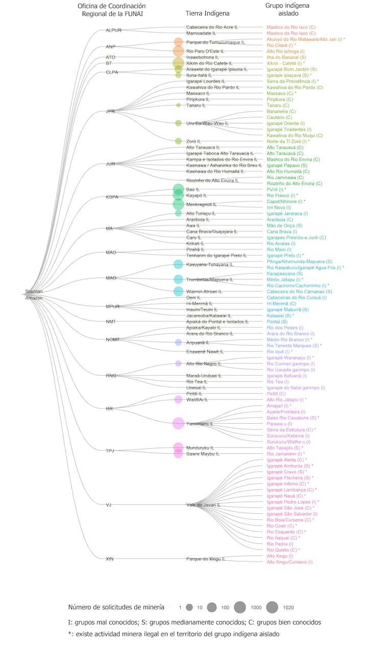 Además, los grupos aislados conocidos podrían obstaculizar la obtención de las licencias necesarias. El texto actual del proyecto de ley PL191/2020 permitiría las operaciones mineras en tierras indígenas con grupos aislados, pero no dentro del territorio estrictamente frecuentado por estos. Por tanto, los grupos aislados peor estudiados representan un menor riesgo para obtener una licencia porque los límites de sus territorios son totalmente desconocidos.