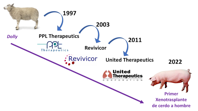 La oveja Dolly nació en 1996 en colaboración con la empresa PPL Therapeutics, que desapareció en 2003. De su desmantelamiento surgió otra, Revivicor, que siguió aplicando la misma tecnología para generar cerdos transgénicos por clonación, hasta que en 2011 fue adquirida por la empresa farmacéutica United Therapeutics, que produjo los cerdos transgénicos de los cuales se extrajo el rinón usado en Nueva York en septiembre y el corazón usado en Baltimore este mes de enero de 2022. Hay una línea imaginaria que conecta a Dolly con el paciente David Bennett.