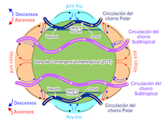El punto de partida para explicar estas o cualquier otra alteración disruptiva de la estabilidad atmosférica en nuestras latitudes hay que relacionarla con un fenómeno meteorológico global: el chorro polar, que es el conductor de borrascas, anticiclones y DANA, entre otras perturbaciones meteorológicas.