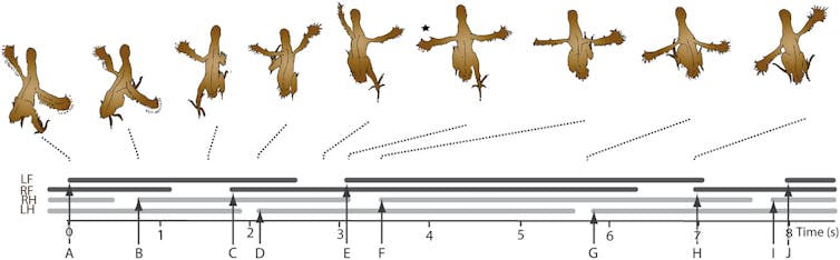 El mecanismo que emplean para trepar es típicamente cuadrúpedo, lo cual también es excepcional en las aves. De hecho, en las aves se produce un desacoplamiento de la coordinación locomotora de forma que las alas se mueven sincrónicamente mientras que las patas actúan de forma independiente. Los pollos del hoatzín, en cambio, mueven sus cuatro miembros de forma coordinada, como los cuadrúpedos.
