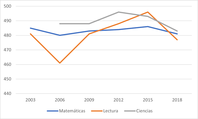 Mientras que, como hemos dicho, las calificaciones se han incrementado sustancialmente en bachillerato y selectividad, en el caso de PISA no se aprecia esta tendencia. Un claro ejemplo de ello es que en el último informe (año 2018) las puntuaciones medias obtenidas en los tres ámbitos fueron inferiores a las del 2003.