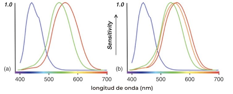 Se dice que los seres humanos somos tricrómatas porque existen tres clases de conos.