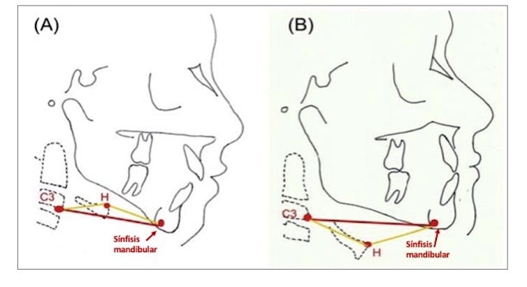 B. Respirador habitual por la nariz. El hueso hioides está por debajo de la línea que forma C3 y la sínfisis mandibular.
