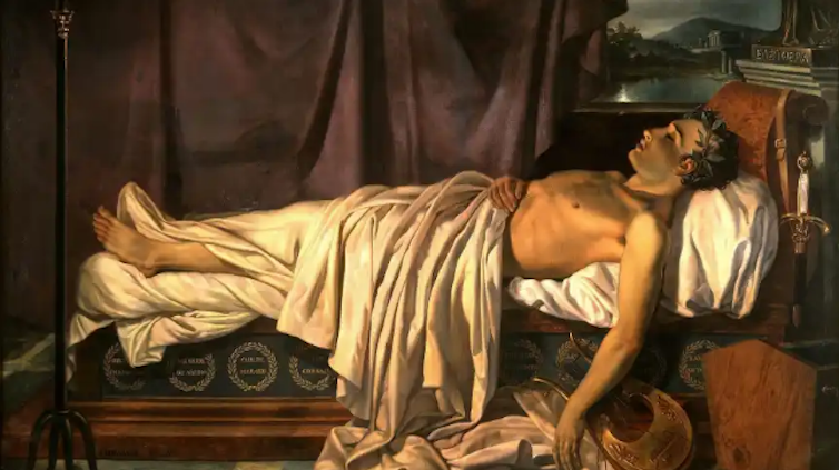 Lord Byron en su lecho de muerte.