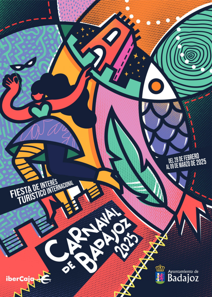 Badajoz ya tiene cartel para el Carnaval 2025, y es una explosión de color y tradición. La obra, titulada ‘Locura de Carnaval’, es del artista Luis Amaya Pérez, y en ella se pueden ver elementos tan típicos de esta fiesta y de la ciudad como la Torre de Espantaperros, la sardina y el antifaz. El cartel es una invitación a sumergirse en la magia y el ambiente festivo del Carnaval de Badajoz, una de las celebraciones más esperadas del año.
