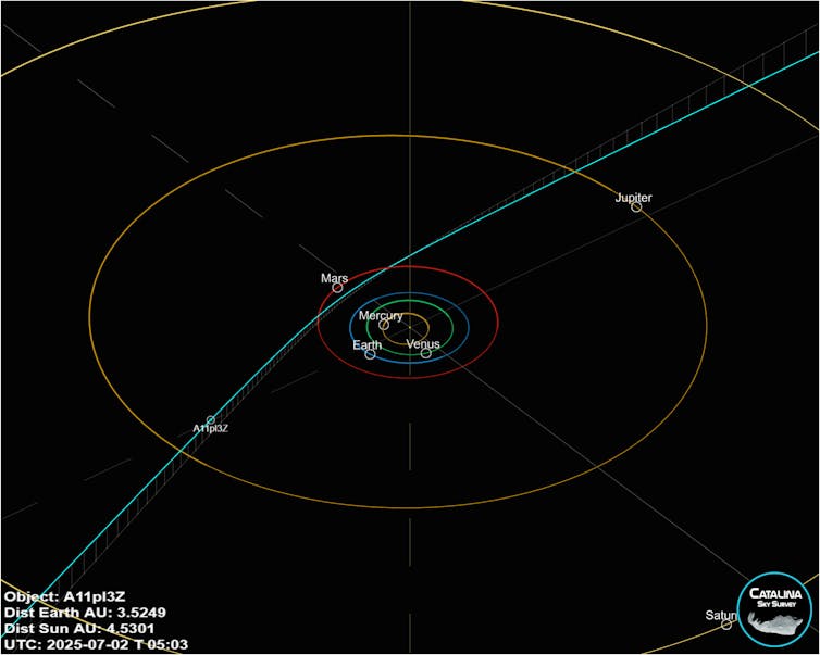 Como en los dos casos anteriores (el cometa Borisov y ‘Oumuamua), A11pl3Z procede del espacio profundo. Estos objetos sólo son detectables cuando están a una distancia suficiente para que la luz reflejada del Sol llegue a los sistemas de rastreo telescópico actuales. De nuevo, el programa automatizado ATLAS ha sido el que ha realizado este histórico descubrimiento.