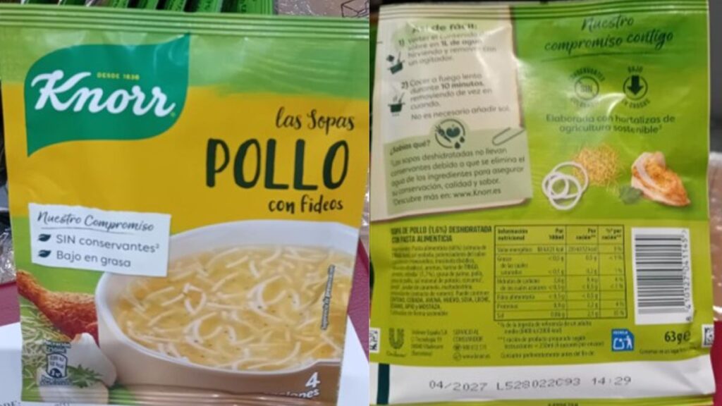 Sopa de pollo con fideos de la marca Knorr | Seguridad Alimentaria