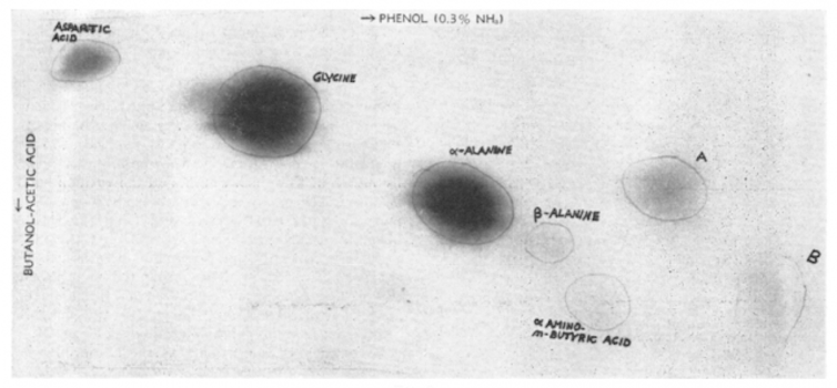 Los aminoácidos son los componentes de las proteínas de los seres vivos, por lo que su presencia en el espacio siempre ha sido sugerente. El primer experimento realizado con el objetivo de entender cómo surgieron las primeras proteínas lo realizó el bioquímico alemán Walter Löb en 1913. En él, obtuvo abundante glicina mediante descargas eléctricas en una atmósfera primitiva simulada. Desde entonces sabemos que los aminoácidos se forman con facilidad a partir de gases simples. Por ello, pensamos que eran abundantes en el inventario químico del Sistema Solar.